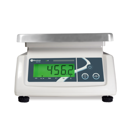 Balanza Control de Peso. Doble pantalla, la cara del comprador y del vendedor. Carcasa en ABS Plato en acero inoxidable. Protección IP54. Capacidad 6 Kg. Fracción 2 gramo. Certificación CE.